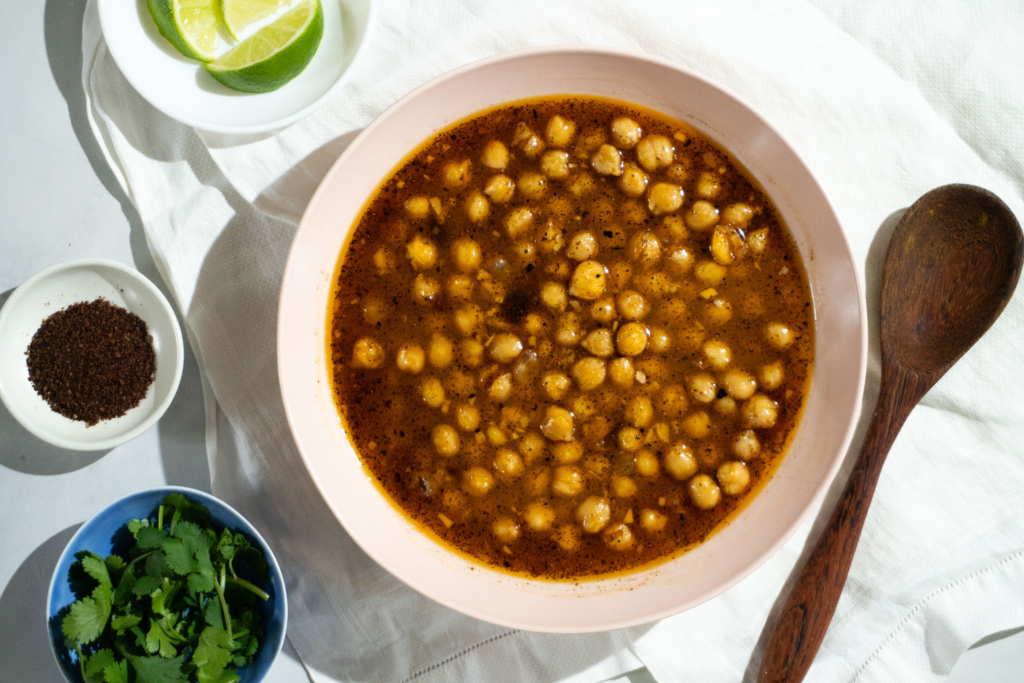 3) Remove pan from Suvie. Stir in sumac. Season to taste with salt and pepper. Divide between bowls, drizzle with olive oil, and serve with warm bread on the side.