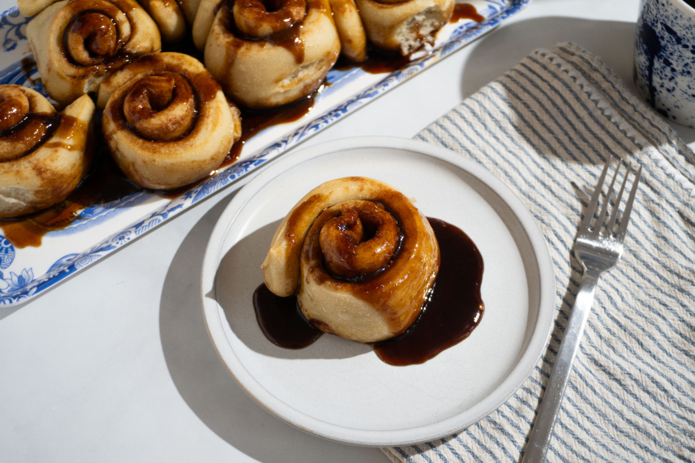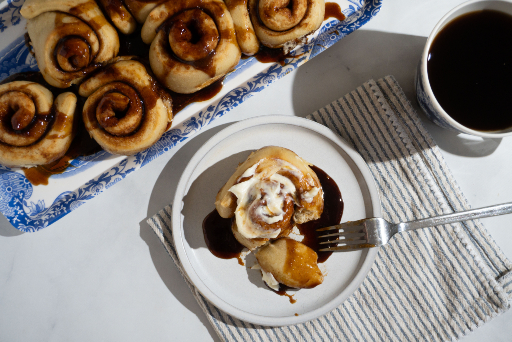 6) Remove pan from Suvie. Allow to cool for 5 minutes in the pan before running a knife along the edge of the pan and removing cinnamon rolls with a spatula. Spoon caramel over the rolls and serve warm.